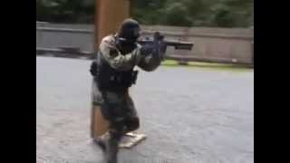 *A swat training course has been set up near a open field in California US. a projector plays a 'epic montage' on what part of the training would supposedly 'look' like. Meanwhile the swat team is continuing to wait for new recruits.*